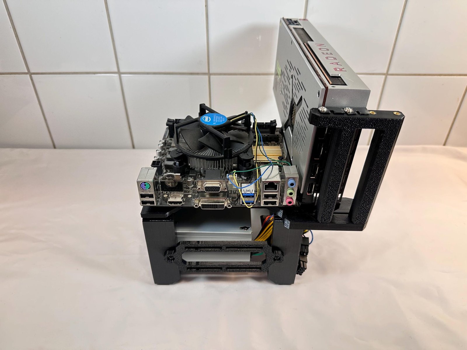 Mini-ITX Test Bench — Compact Desktop PC Building Stand with PSU Support and Airflow Layout